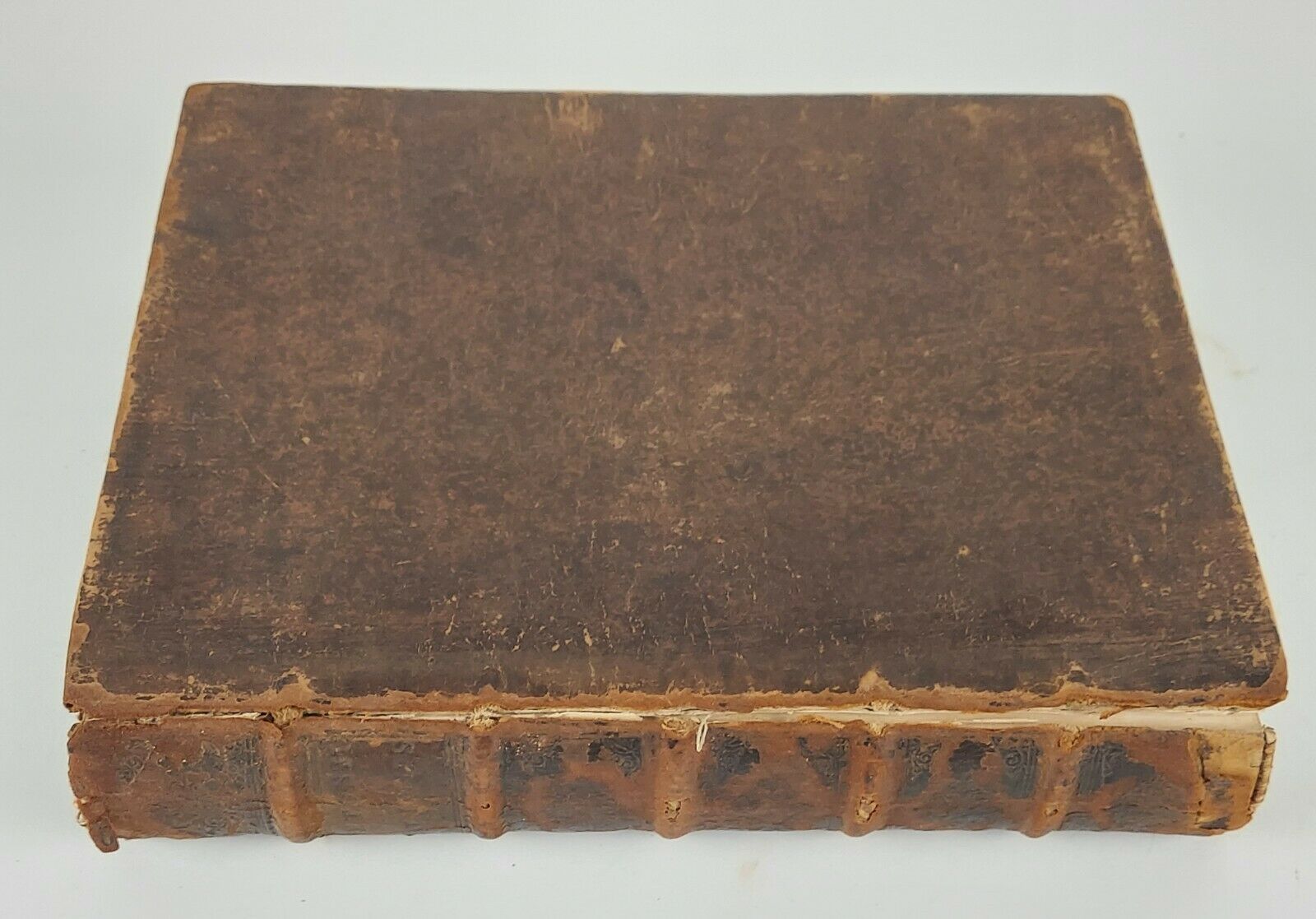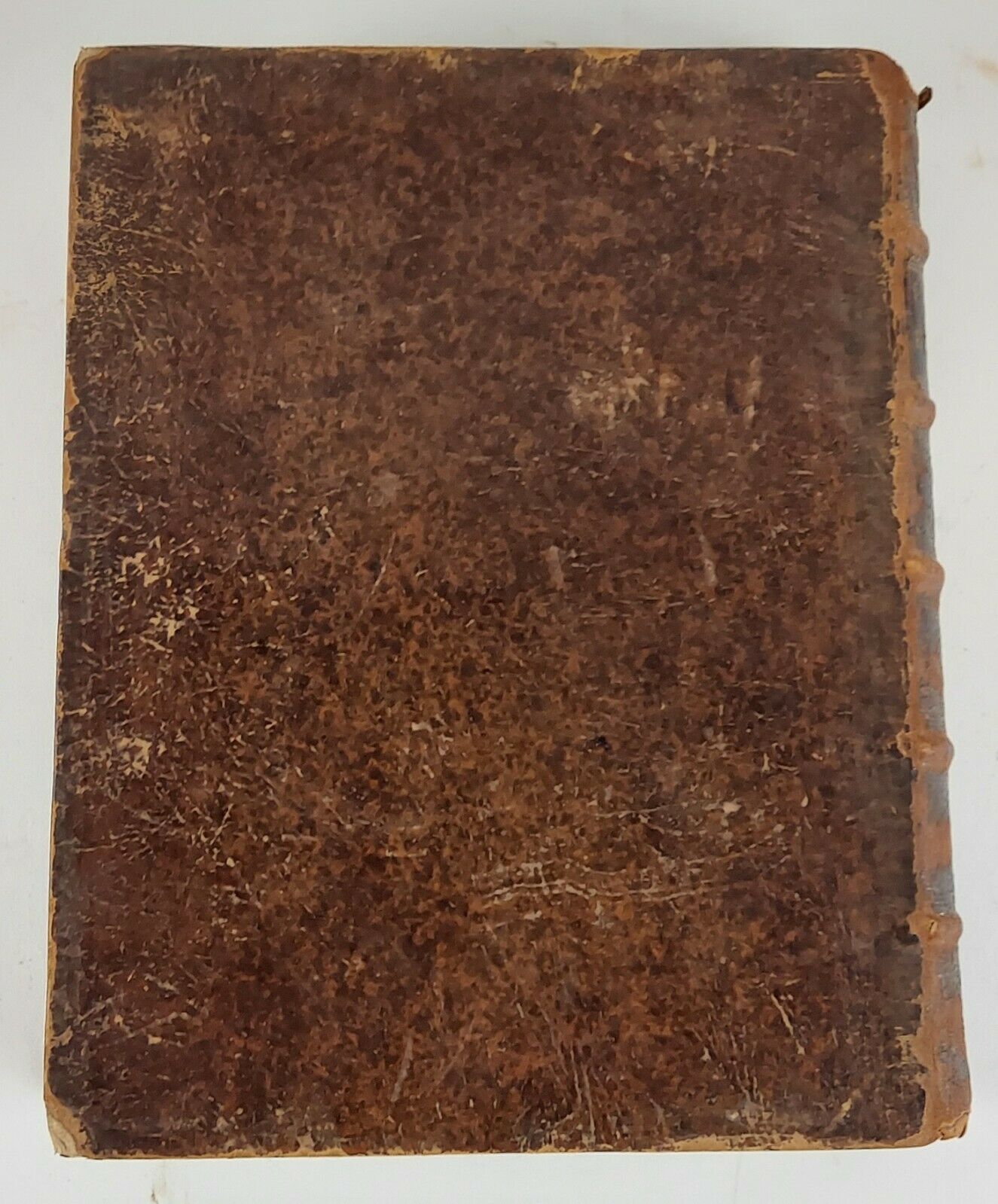 Basileae, 1706. square 8vo, 472pp., 58pp. index; VG-; spine paneled brown with tooling and a label with lettering, gilt has worn off; bound in mottled calf with heavily worn gilt tooling on board edges; marbled endpapers and text block; front board and first 2 endpages are loose for the bottom two thirds; spine has some heavy wear, including head, tail, and ridges; pp. 106 loose; pp. 169-234 has some minor insect damage; binding slightly loose on pp. 208-209; text clear of most writing, clear of foxing. Shelved in Room G. 1260476. Special Collections.