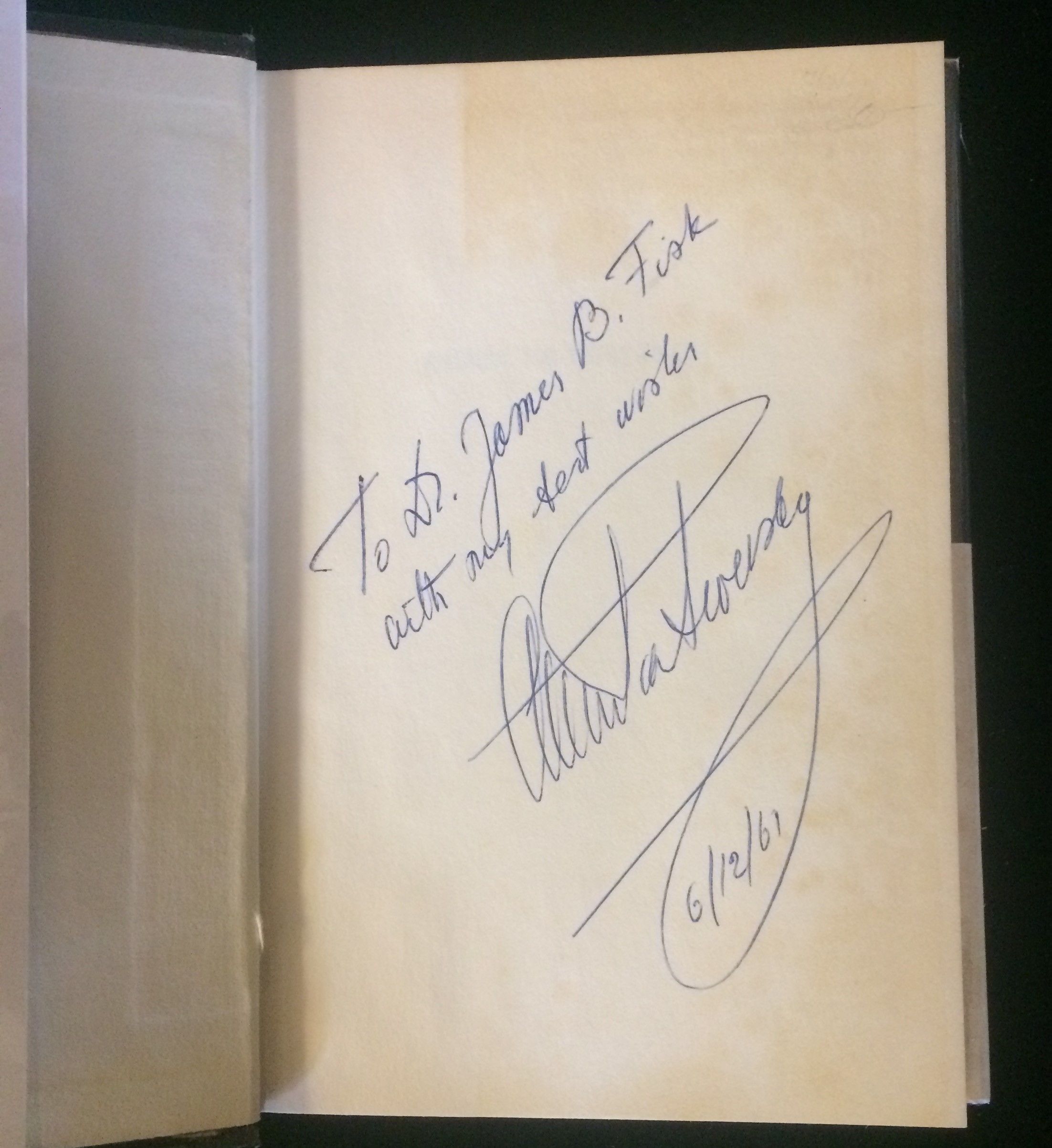NY: McGraw-Hill, 1961. 1st Edition. Hardcover. Near Fine/Near Fine. Author, aviator and inventor, Russian-born, Alexander de Seversky (1894 - 1974) was notably a US air strategist, who chronicled the supremacy of US air power in WWII in his bestselling book, Victory Through Air Power, and its sequel. Here he cautions the US about complacency and non-competitiveness with the USSR in nuclear offense. Inscribed by Seversky and dated 6/12/61 on the ffe to James B. Fisk (1910 - 1981), who was a key figure in the development of radar, as Director of Research and later President of Bell Laboratories. A noteworthy association, Cold War or otherwise. Sharp copy all around.