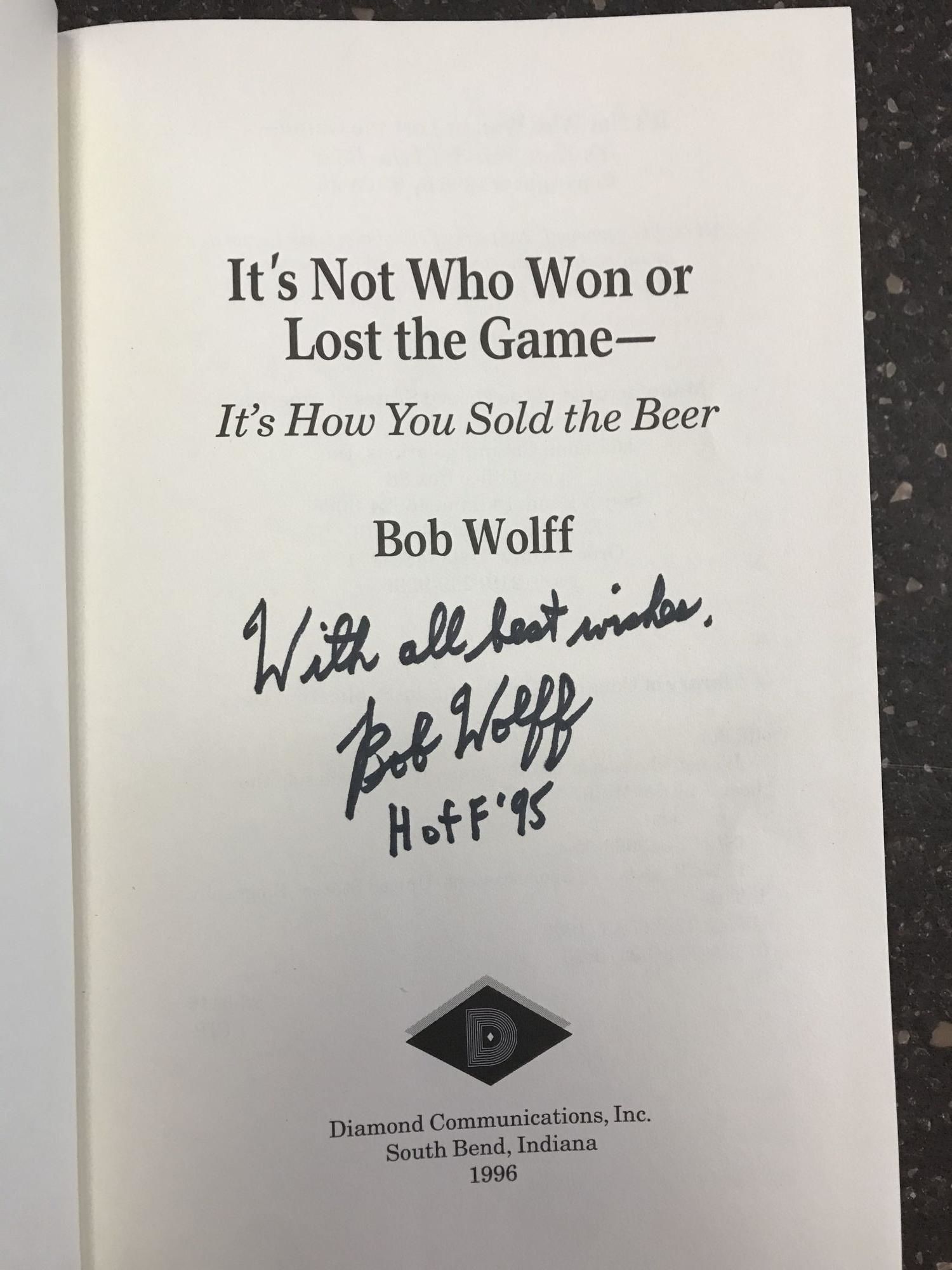 South Bend, IN: Diamon Communications, Inc, 1996. First Edition, First Printing. Hardcover. Octavo, 239 pages; VG/VG; black and gold spine with black and gold lettering; price uncut "$24.95"; minimal shelf wear, pages clean; signed, dated, and inscribed by Bob Wolff on the title page; shelved in Baseball. 1332180. Shelved Dupont Bookstore.