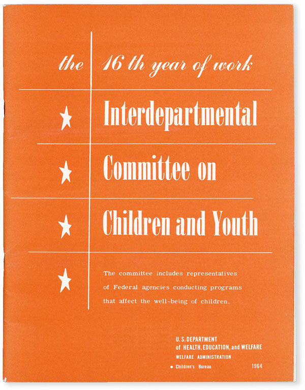 [Washington, D.C.]: U.S. Department of Health, Education, and Welfare - Welfare Administration, Children's Bureau, 1964. First Edition. Quarto. Staple-bound wrappers (softcover); 85pp. Clean, tight and unmarked; Near Fine. Includes reports of various subcommittees including Services for Adolescent Girls; Families & Children of Agricultural Migrants; Parent & Family Life Education; etc.