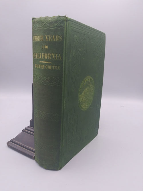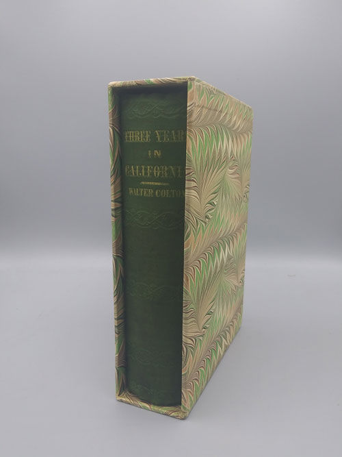 New York: A. S. Barnes & Co, 1850. First edition. Hardcover. Very good. 456pp. Octavo [19 cm] in decorative blindstamped green cloth with gilt spine title and cover device. In attractive modern slipcase of marbled paper over sturdy boards. The front pastedown has a previous owner's bookplate and the remains of a small label. The pages are lightly foxed throughout. The text block is sporadically cracked. The preliminary pages, including the frontispiece, have very light tidemarks. Complete. All plates present. With the Declaration of Rights in the Constitution of California (with a 5" closed tear). Wright Howes, 631. The George W. Soliday Collection of Western Americana (A Descriptive Checklist by Peter Decker), II, 233. Walter Colton served as the first Alcalde of Monterey, and was the co-publisher of California's first newspaper, "The Californian.