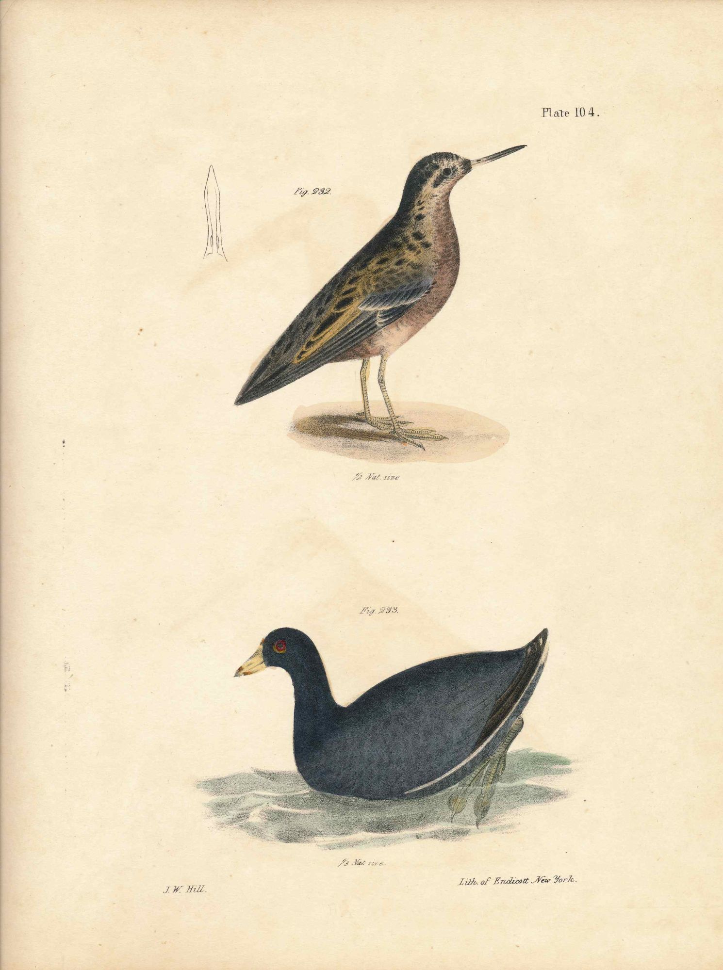 Bird print - Plate 104 from Zoology of New York, or the New-York Fauna. Part II Birds. (American Coot and Red Phalarope)