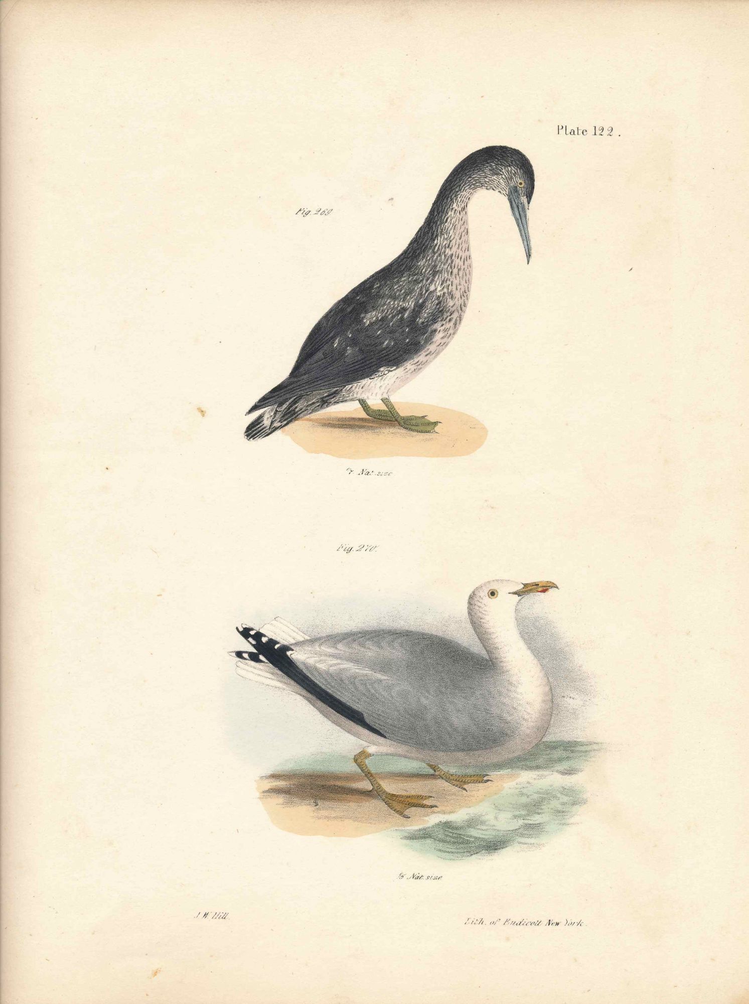 Albany: Carroll and Cook, 1844. Very Good. Hand colored lithograph of two birds - (American Gannet and Winter Gull). Minor browning to edges. Light foxing. Size: 11.25 x 9 inches. Print/092820.