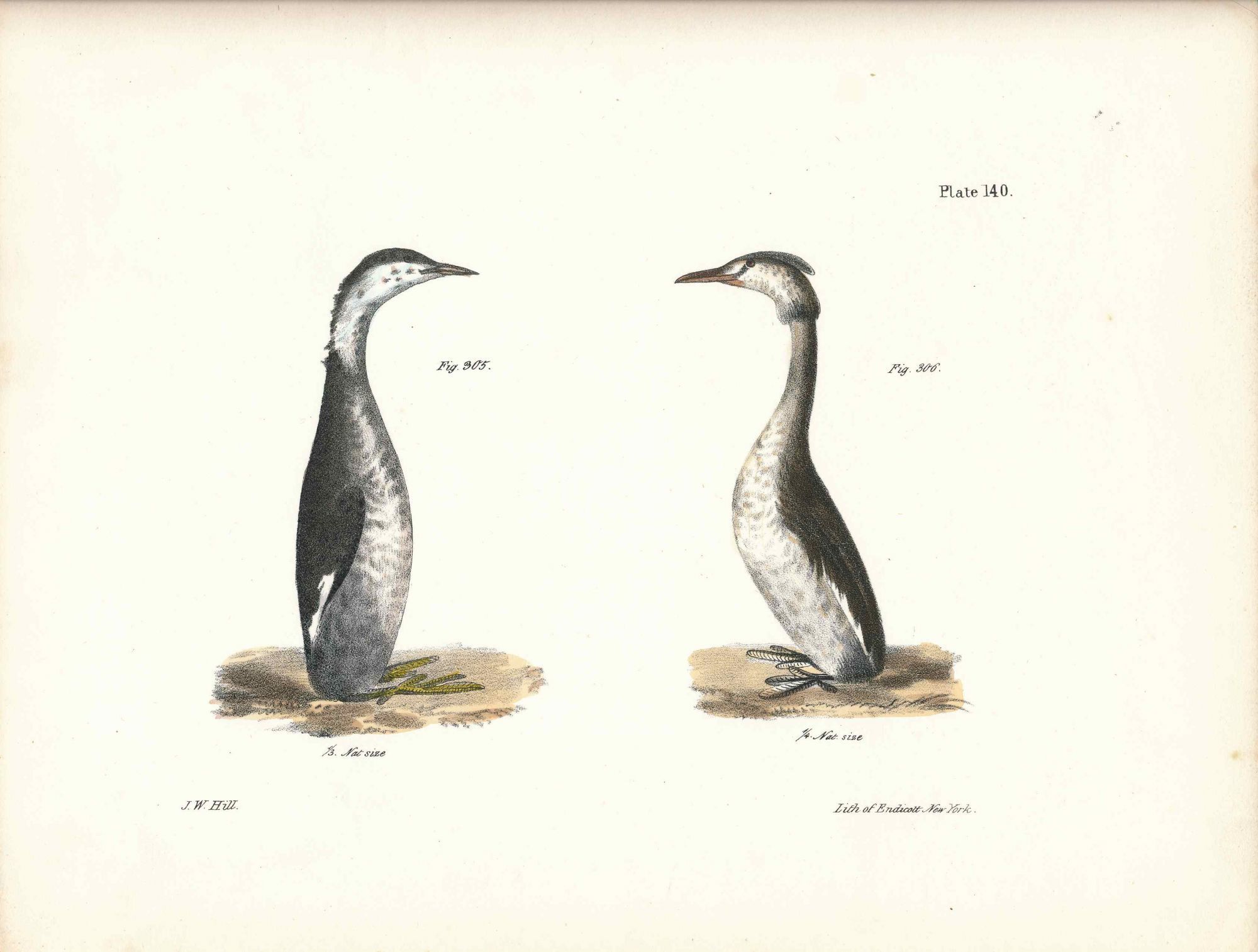 Bird print - Plate 140 from Zoology of New York, or the New-York Fauna. Part II Birds. (Grebes)