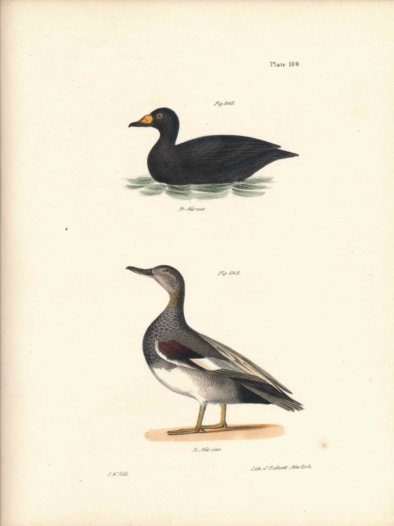Albany: Carroll and Cook, 1844. Very Good. Hand colored lithograph of two birds - Ducks. Minor browning to edges. Light foxing. Size: 11.25 x 9 inches. Print/092820.