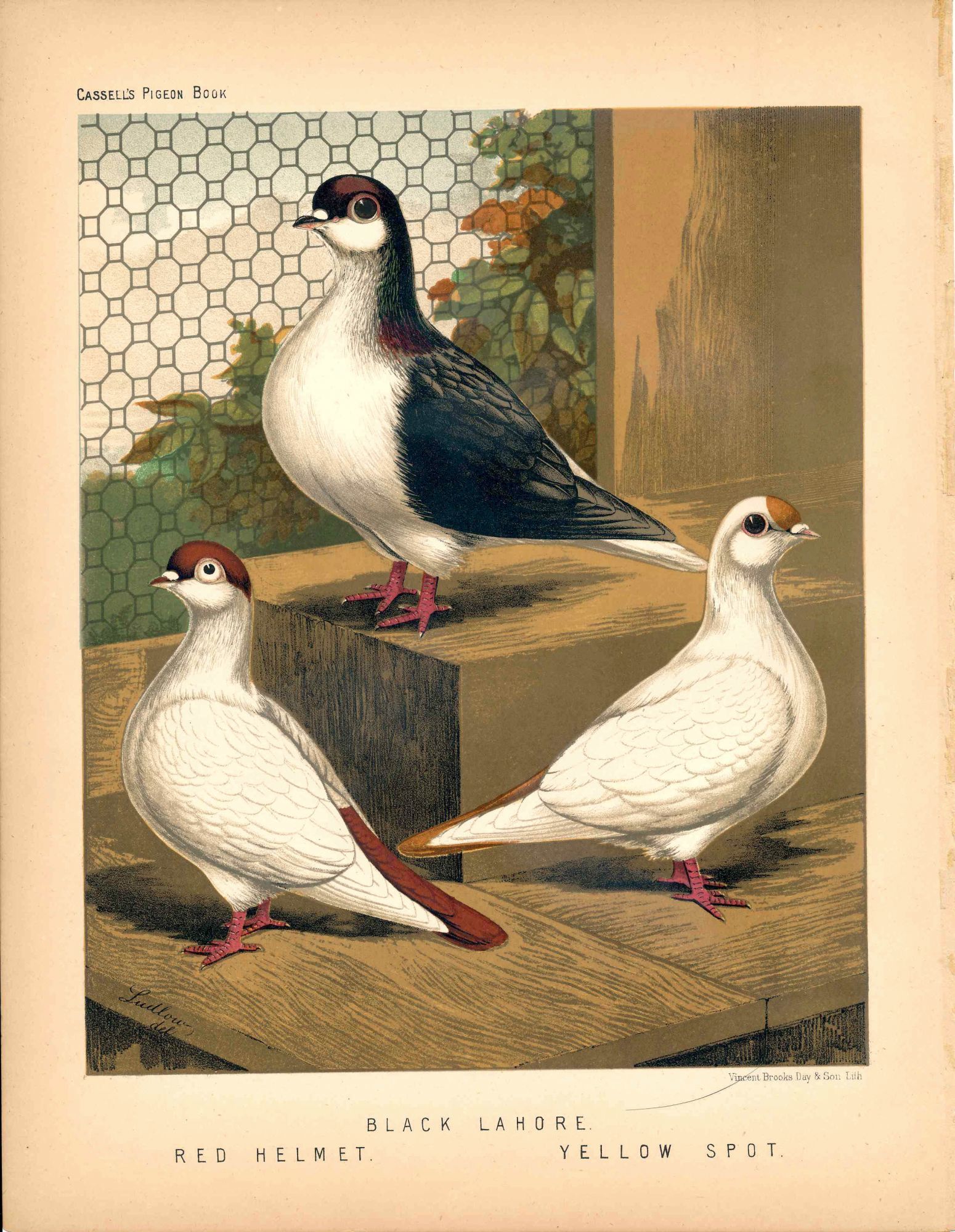 Cassell's Pigeon Book - "Black Lahore. Red Helmet. Yellow Spot" Pigeons