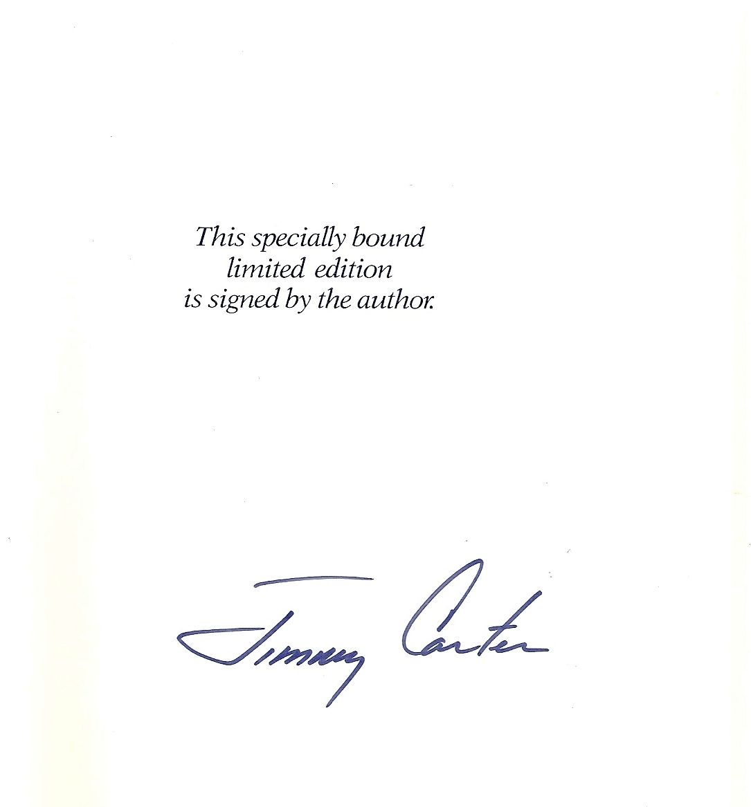 New York: Bantam Books, (1982). First Edition. Hardcover. Light foxing to endpapers. Near Fine in a Near Fine slipcase. Bound in centennial blue buckram with matching slipcase. Illustrated with photographs. One of an unknown limitation SIGNED in full as "Jimmy Carter." Uncommon issue of this book.