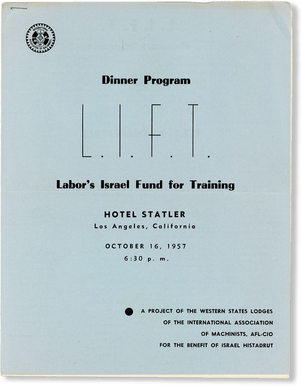 Dinner Program L.I.F.T.: Labor's Israel Fund for Training. Hotel Statler, Los Angeles, California, October 16, 1957, 6:30 P.M.