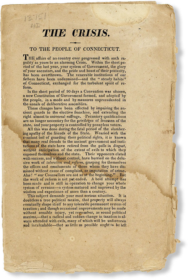 [Drop title] The Crisis. To the People of Connecticut