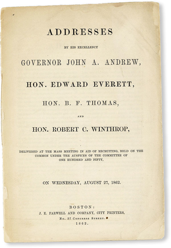 Addresses by His Excellency Governor John A. Andrew, Hon. Edward Everett, Hon. B.F. Thomas, and Hon. Robert C. Winthrop, Delivered at the mass meeting in aid of recruiting, held on the common under the auspices of the Committee of One Hundred and Fifty, on Wednesday, August 27, 1862