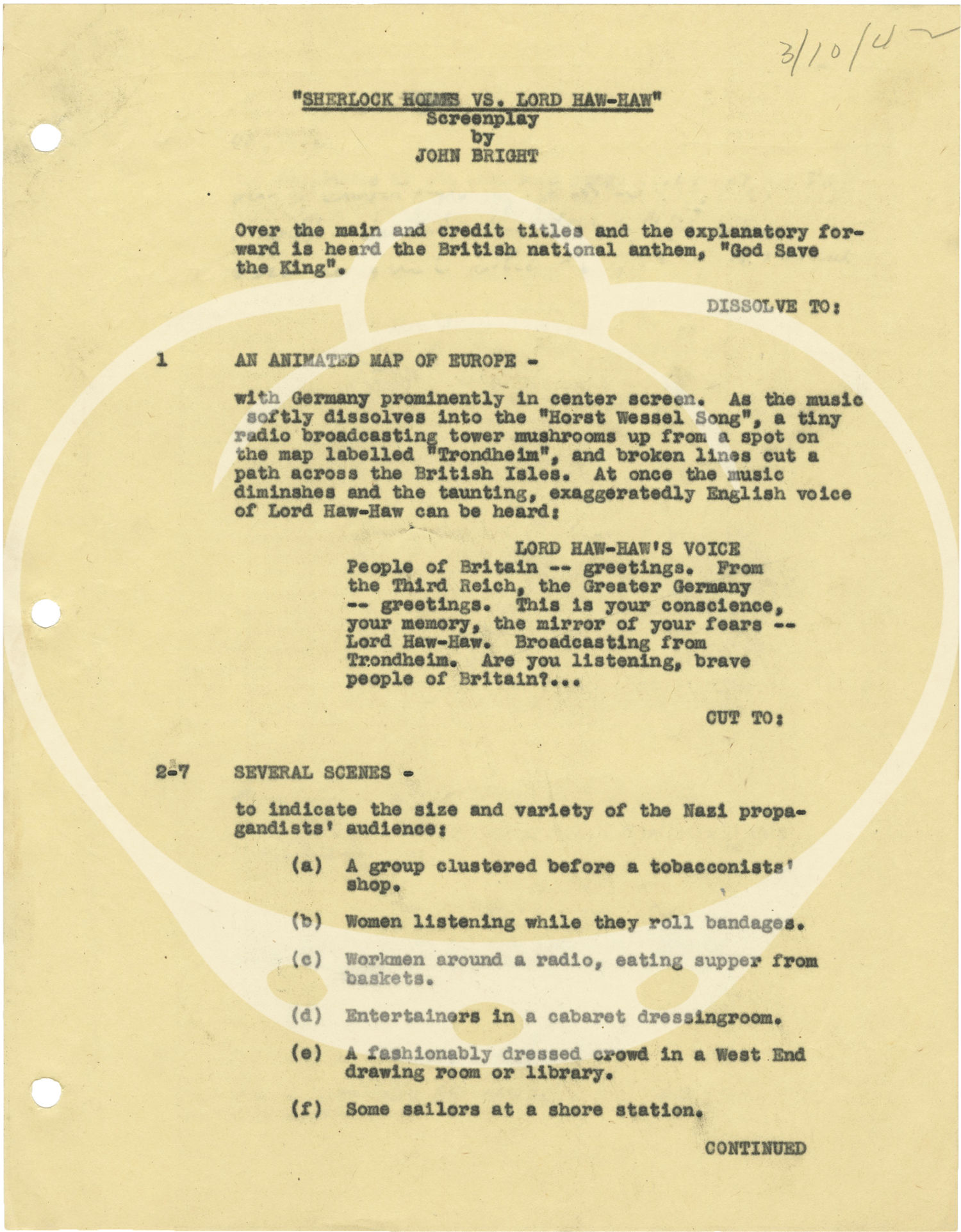 3/10/42 script, "Sherlock Holmes vs. Lord Haw-Haw":