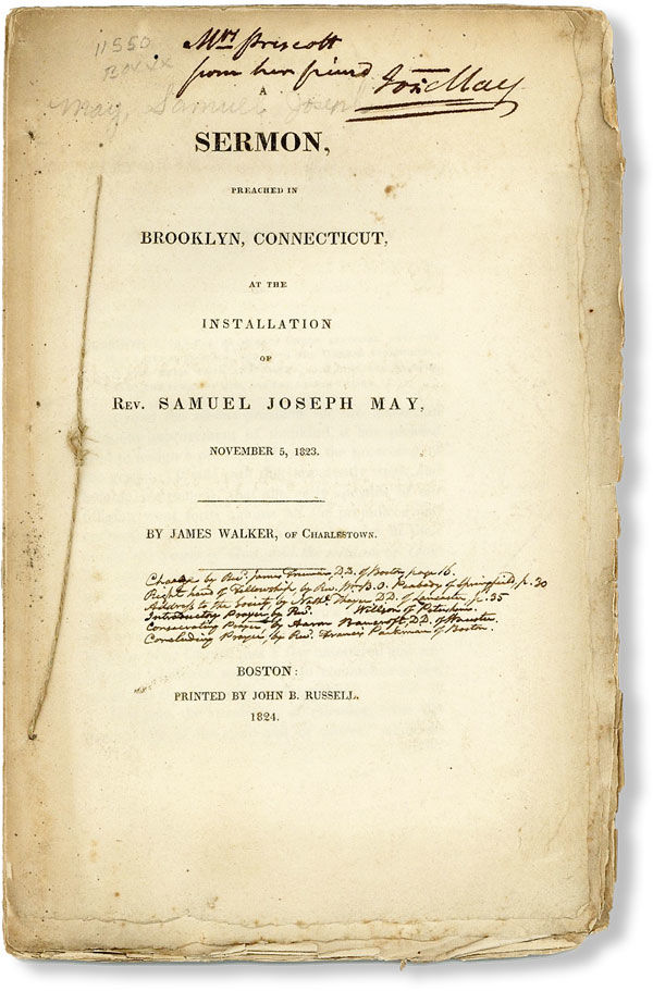 A Sermon, Preached in Brooklyn, Connecticut, at the Installation of Rev. Samuel Joseph May, November 5, 1824 [Inscribed and Signed by May]