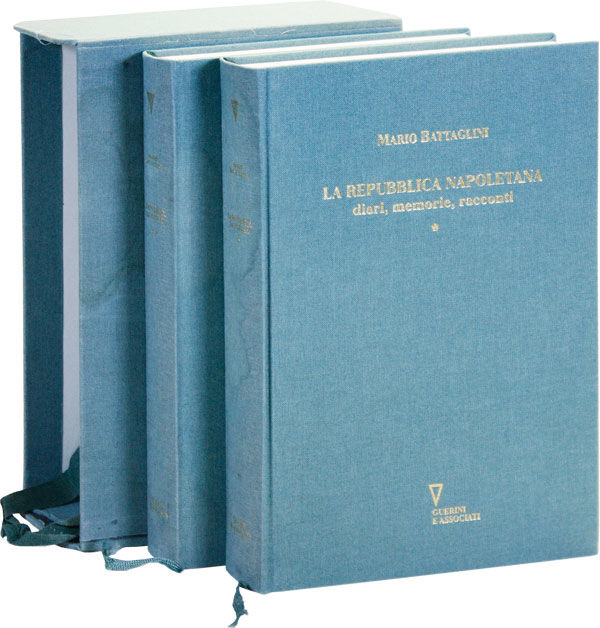 [Milano]: Guerini e Associati, [2000]. First Edition. Two volumes; large octavo (24.5cm.); publisher's teal gilt-lettered cloth in matching cloth slipcase; 348; 317pp. Large dampstain to upper panel of slipcase somewhat bleeding onto upper covers and spines of both volumes, some wear to slipcase extremities, else a Very Good of better, internally clean and fine set. Published for the Instituto Italiano per gli Studi Filosofici in Naples. Text chiefly in Italian, some French.