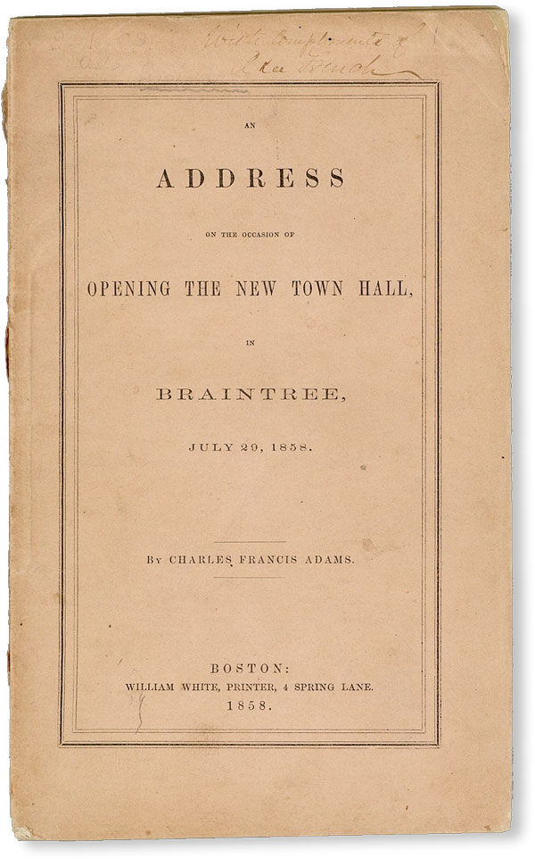 An Address on the Occasion of the Opening of the New Town Hall, in Braintree, July 29, 1858