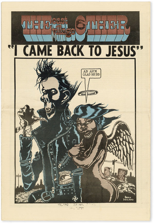 New York: The East Village Other, Inc, 1971. First Edition. Tabloid (43cm); illustrated newsprint wrappers; 20pp; illus. Trivial wear and dustiness to wrappers, else Fine, unfolded and without postal markings. Contents include contributions by Jaakov Kohn, Jared Seth November, Coca Crystal, Bob Singer, Steve Kraus, P.J. O'Rourke, Michael Cannon, and others, with comix by Joe Schenkman. Front wrapper features full-page artwork by Brad Holland.