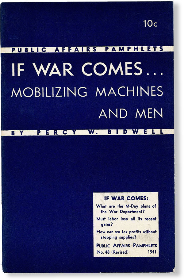 [New York]: Public Affairs Committee, 1941. Revised Edition. Octavo (21cm.); publisher's blue staplebound wrappers; 31pp.; illus. Light shelf wear and a hint of dust-soil, else Very Good or better. Public Affairs Pamphlet no. 48. Summary of a study of the Council on Foreign Relations published as "Mobilizing Civilian America," by Harold J. Tobin and Percy W. Bidwell.