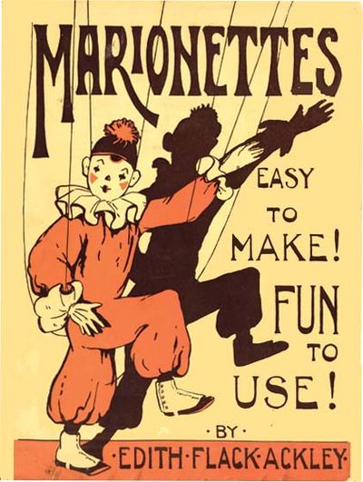 Philadelphia: Lippincott, 1929. Fine in very good jacket.. Children's activity book with instructions on making marionettes, including pattern sheets for faces and costumes. Quarto. Original cloth. In original dust jacket. Illustrated by Flack in black and white. Inserted into a pocket in the back are full size pattern sheets. 115, [1] pages. Dust jacket soiled.