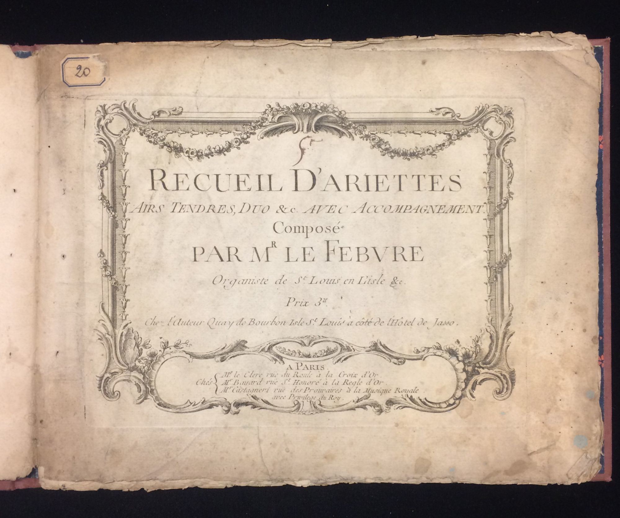 RECUIEL D'ARIETTES AIRS TENDRES, DUO &c AVEC ACCOMPAGNEMENT COMPOSE PAR M. LE FEBVRE