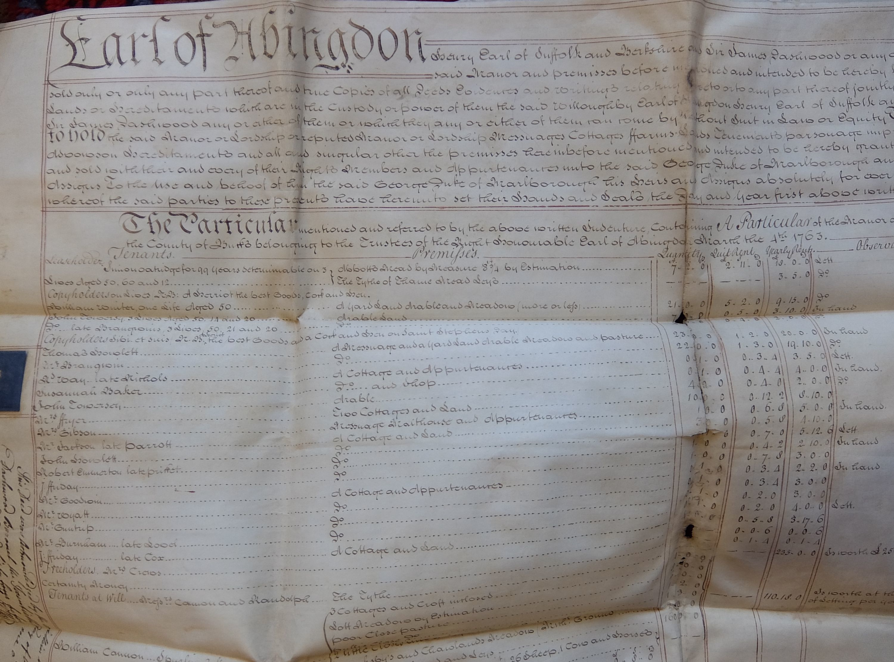 1763. very good. British Music composer and patron of the arts; who later, as a political writer, rigorously defended the liberties of the American Colonies, in contrast to his close friend Earl of Suffolk. His brother-in-law introduced him to Johann Christian Bach and Carl Friedrich Abel and he was subsequently very involved in their careers. From 1791-1795 he became a patron of Franz Joseph Haydn and is often acknowledged as having contributed greatly to the composers success. In the political arena Abingdon was an outspoken critic of Lord North and his Administration yet denounced the French Revolution as "A threat to World Peace"; and argued that the abolition of the Slave Trade was the result of a "New Philosophy" inspired by the new French Republic. Toward the end of his life he became entangled with severe financial problems and subsequently died in poverty at age 59. Outstanding and historically important Document, a 1763 elephant-folio Deed, executed on vellum, 2 pages, whereby Abingdon and two of his close Political Allies, transfer the "Right-Title and Interest" in a considerable estate to The Duke of Marlborough, boldly signed: "Abingdon" Plus: British politician Henry Howard (1739-1779), better known for his role as the Earl of Suffolk, Secretary of State under Lord North, who secured Hessian and Hanoverian Mercenaries to help suppress the American Revolution, he signs this Document "Suffolk and Berkshire", and: Sir James Dashwood (1715-1779), who, in British National Politics supported staunch Anti-Catholic policies and, as a Tory member of Parliament moved swiftly to call for the Repeal of the Jewish Naturalization Act. He later called for the Repeal of the Plantation Act, which allowed for Foreign-born Protestants residing in any of the American Colonies, for a period of seven years, to be deemed to be one of his Majesty%u2019s %u201CNatural-Born Subjects%u201D, he signs this Document "Dashwood". All three would play a major role in influencing political and military policy during the American Revolution. Some frays with a minor separation at the folds. The signatures are boldly signed and in excellent condition.