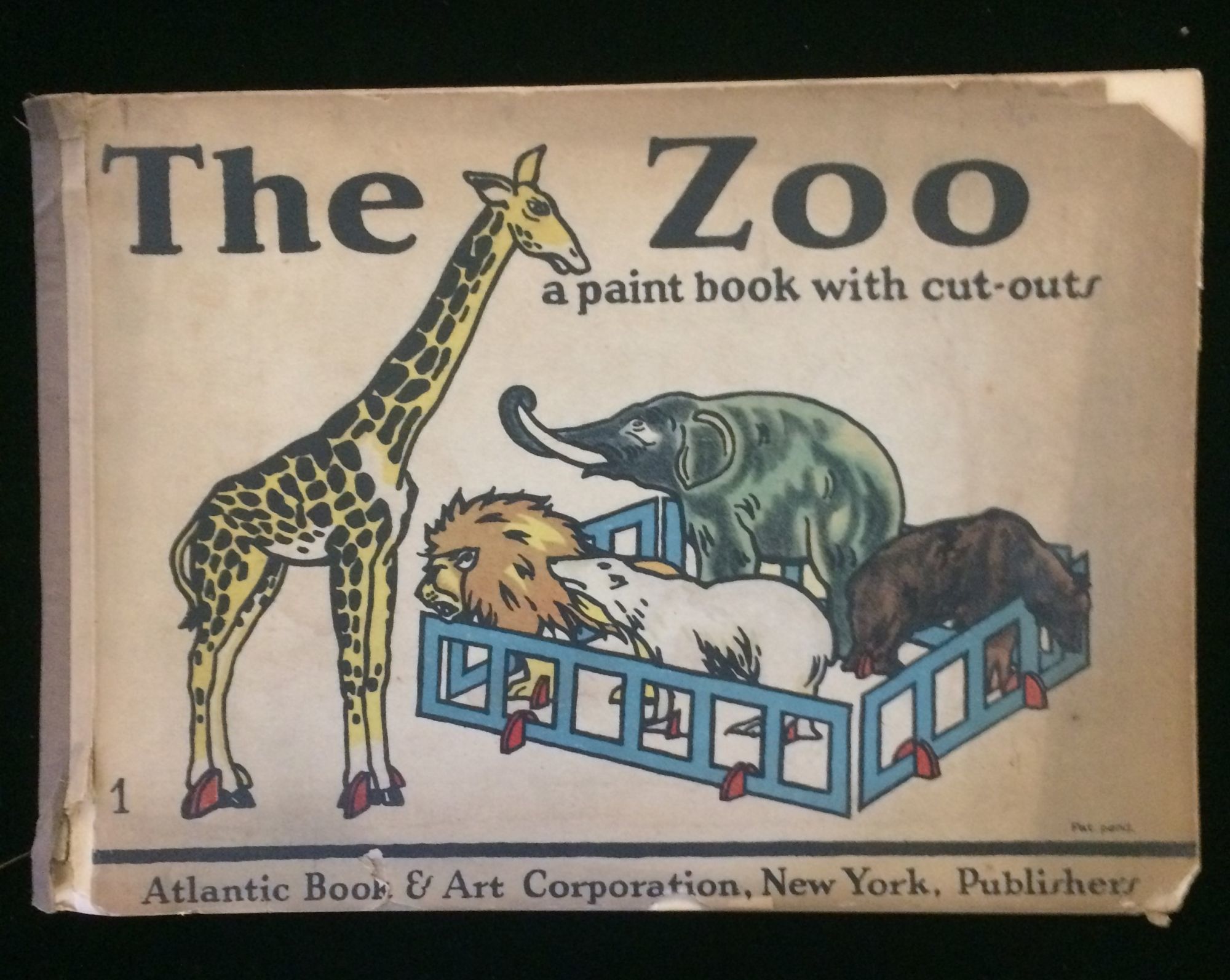 NY: Atlantic Book & Art Corporation 0. 1st Edition. Soft cover. Fair. Presumed first or early edition. Large oblong, pictorial cardboard cut outs, with 8 pages of zoo animals, some pages torn, many of the animals cut out but laid back in. An obviously used copy. Number 1 in the Orbis Paint Book with Cut Outs the other 3 identified by pub list on rear cover: @ Wild West, 3 The Circus 4. The Farm. Published by Atlantic Book and Art Corporation, 47 Murray St, NYC. nd, c1920s-30s.