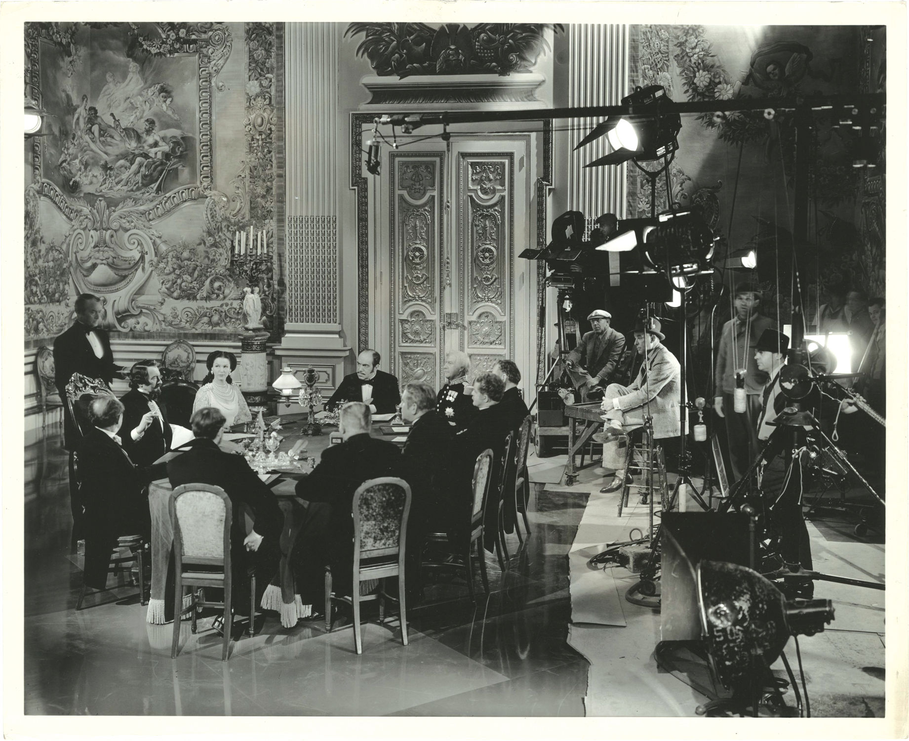 N.p.: N.p., 1939. Vintage reference photograph showing Claude Rains, Gale Sondergaard, Montagu Love, and director William Dieterle on the set of the 1939 film. Mimeo snipe on verso.
