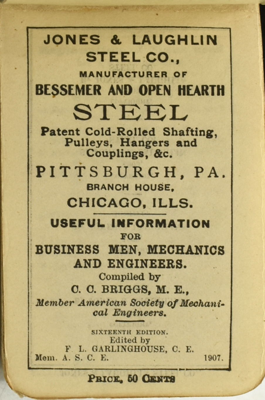 - Pittsburgh, PA: Jones & Laughlin Steel Co, 1907