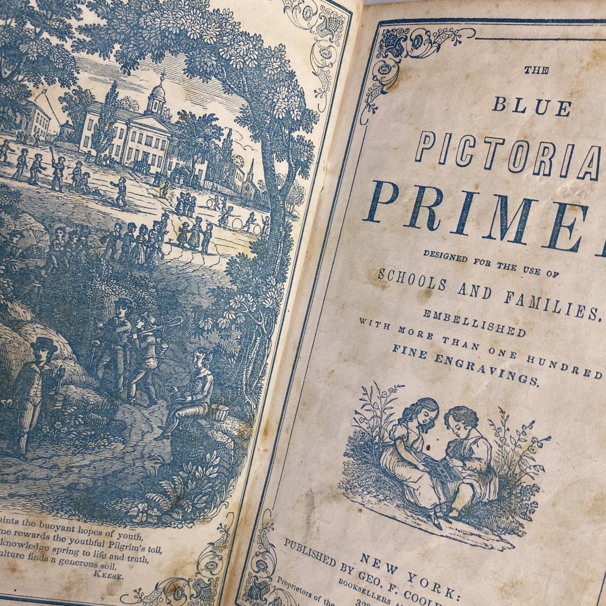 [CHILDREN] THE BLUE PICTORIAL PRIMER; DESIGNED FOR THE USE OF SCHOOLS AND FAMILIES. EMBELLISHED WITH MORE THAN ONE HUNDRED FINE ENGRAVINGS