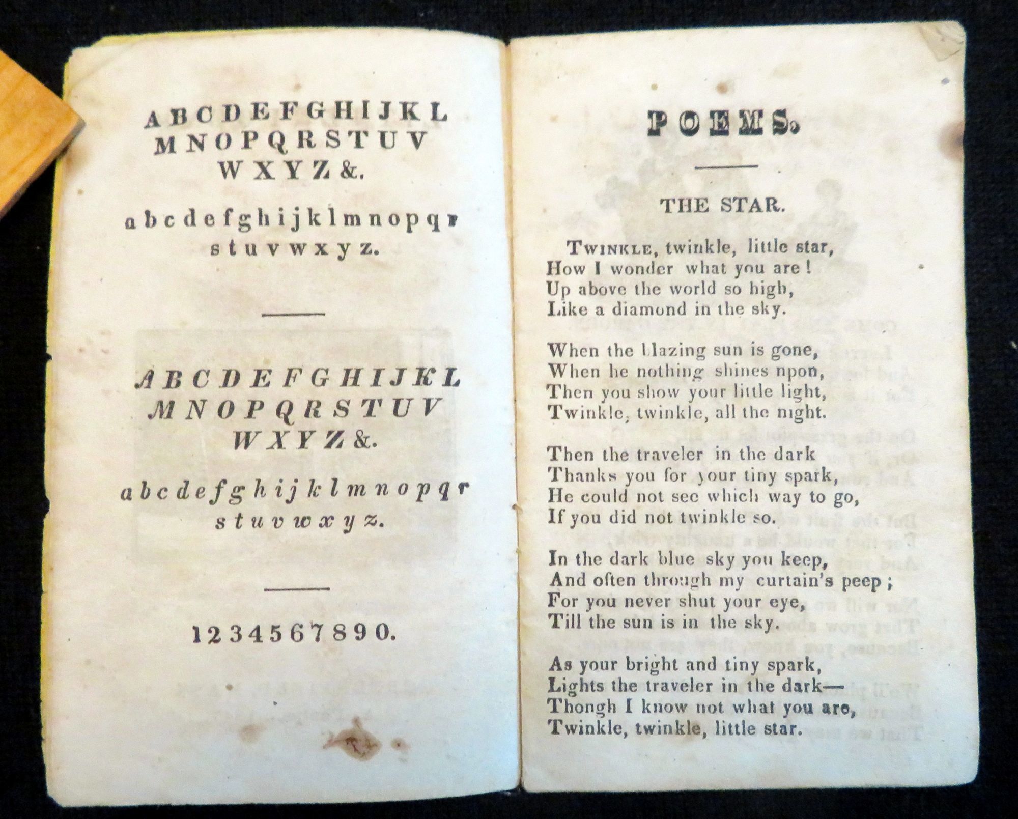 If you did not twinkle so." The OCLC records make mention of a printing error in the numbering of the chap book. Only pages 8-26 are numbered, however if one counts the pages prior to the eighth page, it is clear that the numbers are off and should be numbered 6-24 instead. However, in comparing this chap book to other books printed by the publisher, it doesn't appear to be a printing error, but rather a choice on the part of the publisher to count the front cover in the page count.
