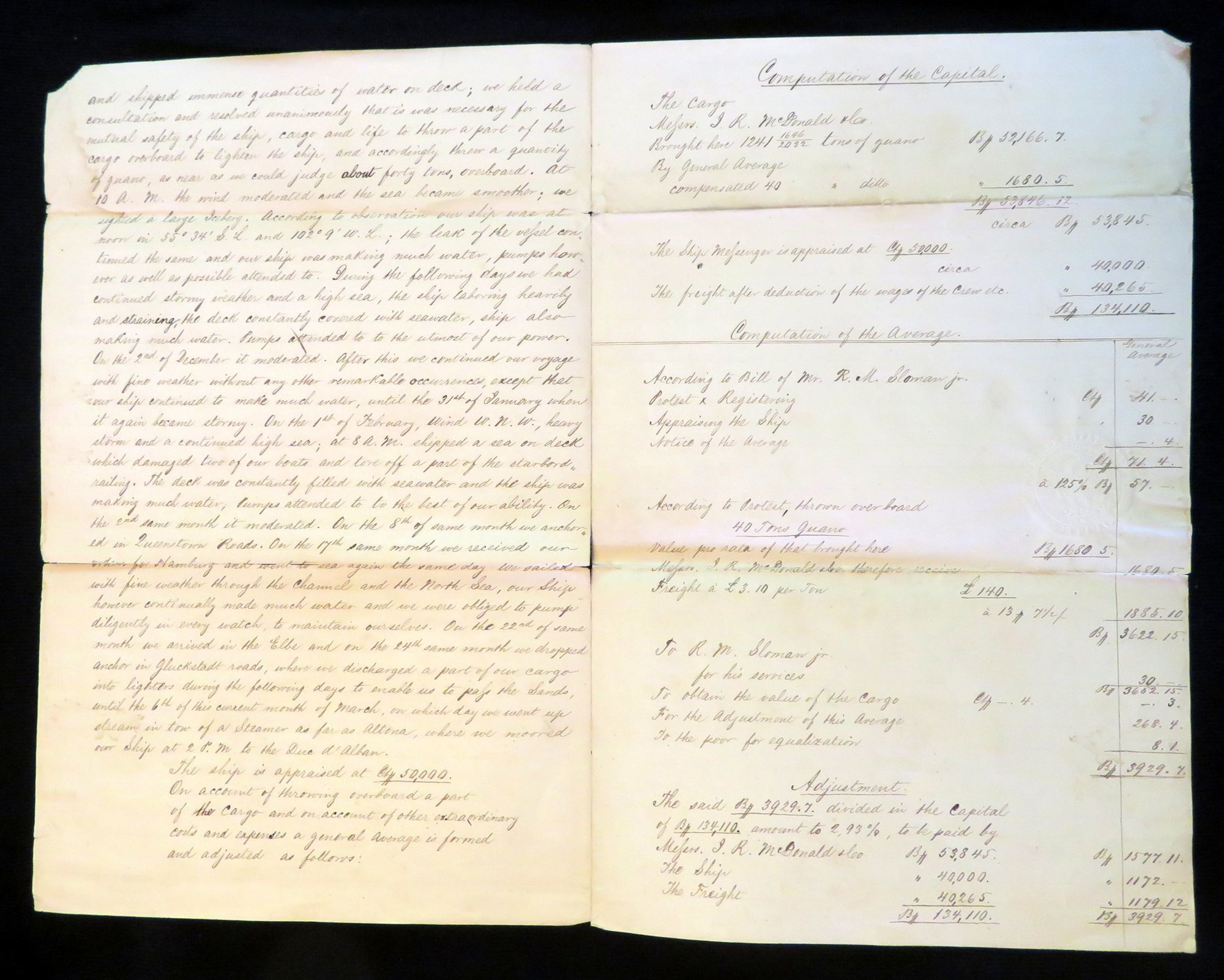 The Translation of the Adjustment of the Average of the Clipper Ship Messenger, W. Hill. Master, on the Average from Bakers Island to Hamburg