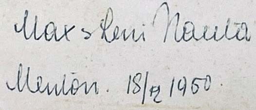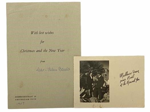 Amsterdam: Het Hollandsche Uitgevershuis, 1948. Signed Copy. Large Hardcover. Very Good/Good. 0x0x0. Signed by author. Signed by Max Nauta with signed Christmas card and photograph laid in. Jacket stained with some small chips and small tears, one inch tear along bottom edge of rear jacket panel. 1948 Large Hardcover. 168 pp. Dutch and English text. Includes 125 plates (19 color) reproduced from thirty years of paintings and drawings. Nauta was a Dutch stained glass artist. "Max Nauta (2 April 1896 - 18 December 1957) was a Dutch painter. His work was part of the painting event in the art competition at the 1924 Summer Olympics.[1]"--Wikipedia