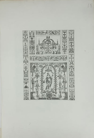[Paris]: Imp. Delâtre, 1880. Very good. An assortment of 24 heliogravures [17 1/2" x 12 1/4"] after the French designer Du Cerceau. A collection of stunning ornamental designs from this highly respected designer of French architecture. Jacques Androuet [1510 - circa 1585] is commonly referred to as Du Cerceau, from the sign on his father's Paris wine shop. According to the British Museum, he worked in Orléans, and was active in Paris from 1559. He fled from Paris around 1564 following the start of the Wars of Religion, as he was a Huguenot. He then settled in Montargis.