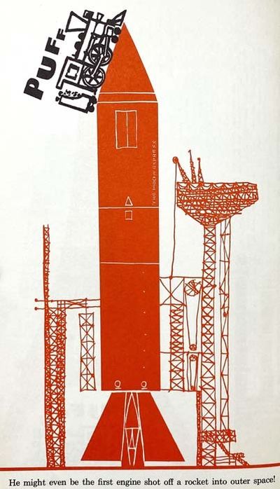 New York: Pantheon Books, Inc, 1960. First Edition. Hard Cover. Very Good/Good. 0x0x0. Wondriska, William. First edition. Jacket price inked out, two 1/2 inch jacket tears, jacket edges a bit rubbed. 1960 Hard Cover. [32 pp.] The third book by the author and designer recognized by the American Institute of Graphic Arts for his first book, The Sound of Things, which was published in 1957. Wondriska pairs a simple story and minimal text with innovative typography and straightforward images, for a strong, effective result. He is also known for his work in promotional design and advertising. A "much-sought-after 1960s-era children's book beloved by the graphic design world and children's book collectors, Puff's midcentury modern aesthetic will appeal to adults and children alike. A design darling, Puff by William Wondriska illustrates an imaginary world in which sometimes the small but brave gestures are important. Puff is a tale about an old-fashioned small steam engine who lives a very unexciting life in a train yard. Puff daydreams that he could swim or imagines traveling to such distant lands as Egypt, India, France, and even to outer space. Puff's chance to prove his mettle finally arrives when a newer modern engine pulling circus cars breaks down during a snowstorm. Puff bravely hooks to the cars and manages to bring the circus into warm sunshine. Playfully mixing type with bold graphics, Puff is a beautifully illustrated and charming underdog story that will appeal to design fans and people of all ages.