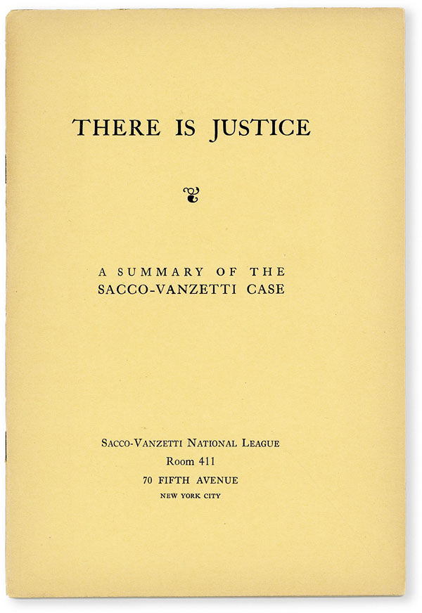 New York: Sacco-Vanzetti National League, [1927]. First Edition. Only printing. Octavo. Staple-bound, printed card wrappers; 21pp. Near Fine.