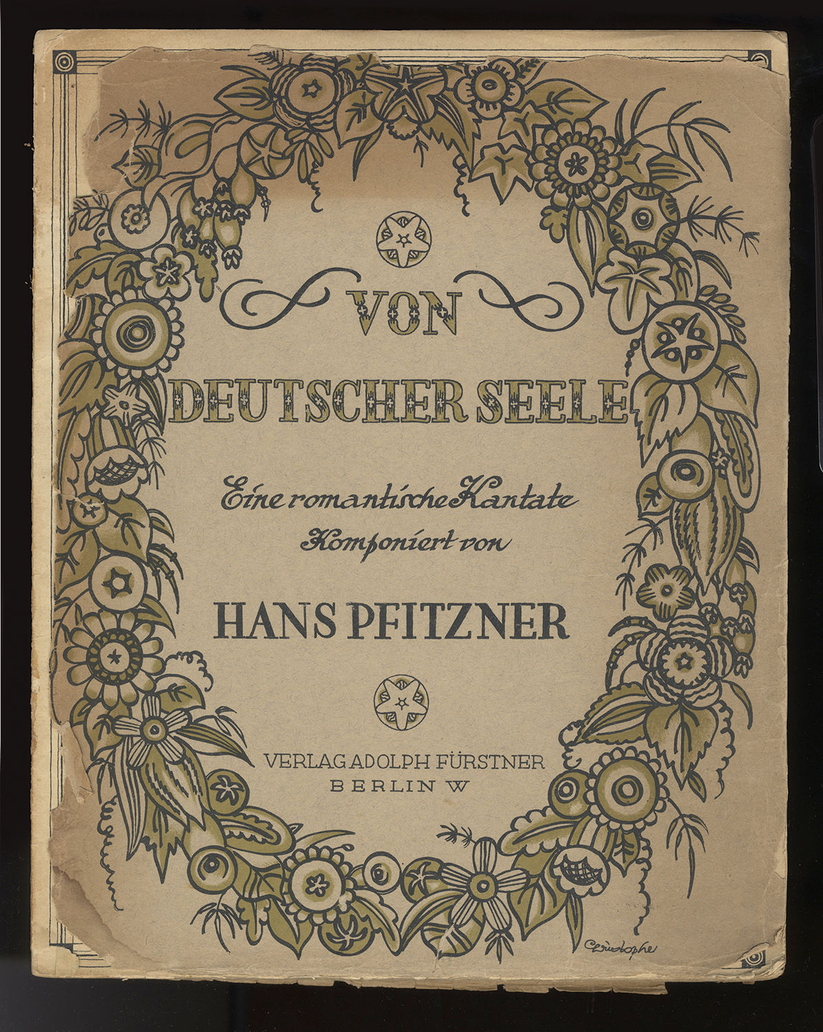 Von deutscher Seele, a secular cantata after texts by Eichendorff, was premiered in Berlin, 27 January 1922. The work was intended to be a patriotic celebration of Germany in the dark years following the end World War I. Views of both Pfitzner and his cantata were greatly transformed, however, after it was chosen years later to be part of the first Reichsmusiktage in 1938.
