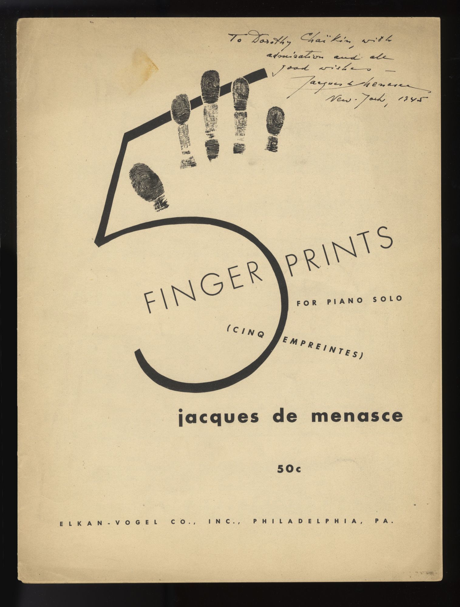 5 Fingerprints (Cinq empreintes) [Solo piano]. Inscribed by the composer