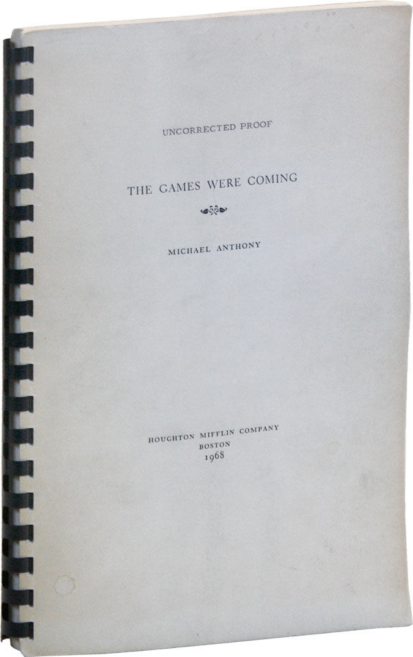 Boston: Houghton Mifflin Company, 1968. First American Edition. Octavo (28cm); publisher's galley sheets, comb-bound into printed card covers; pp.1-68a. Light wear and dustiness to covers and text edges, with a few faint, tiny stains to front cover; Very Good+. The Trinidadian author and historian's first novel (initially publshed by Andre Deutsch in 1963), a cycling novel set against the backdrop of the Southern Games and Trinidad's annual Carnival.