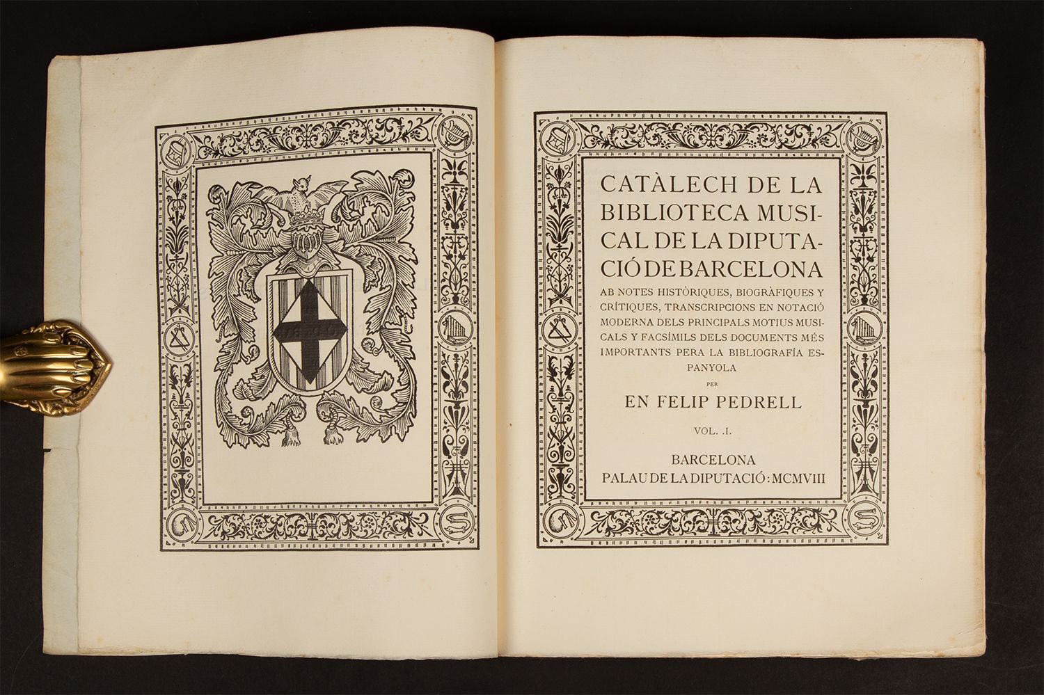 Catàlech de la Biblioteca Musical de la Diputació de Barcelona ab notes històriques, biogràfiques y crítiques, transcripcions en notació moderna dels principals motius musicals y facsímils des documents més important pera la bibliografía Espanyola