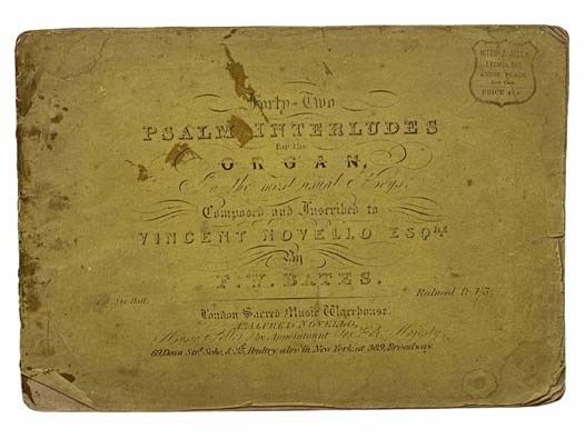 London: London Sacred Music Warehouse, 1851. Stapled Binding. Fair. Rear wrapper missing, front wrapper soiled and stained, ink stamp on front wrapper, blind stamp on title page. 1851 Stapled Binding. 12 pp. 1851 collection of psalms for organ.