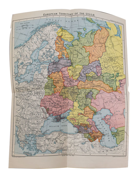 - With 2 folded color maps of European and Asiatic Soviet Union tipped in to each pastedown. 151pp. 8vo