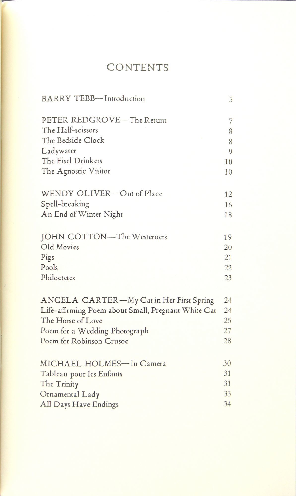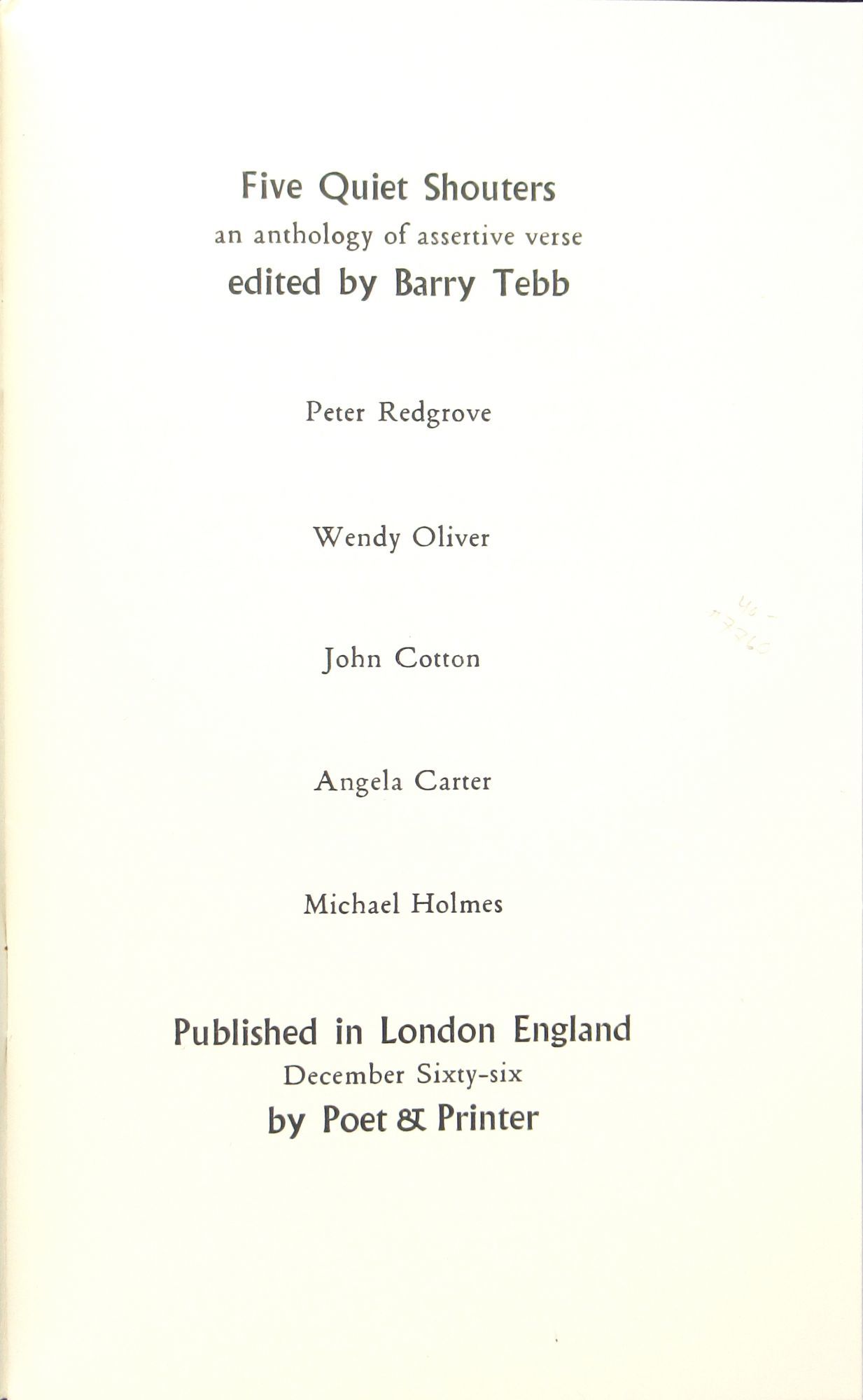 London: Poet & Printer, 1966. Very Good. London: Poet & Printer, 1966. First Edition. Small octavo. 35 pages. Printed wraps. Published the same year as Carter's first novel.