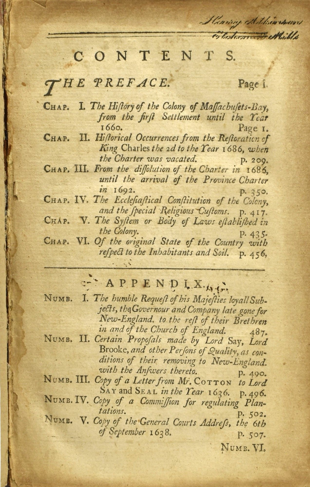 [THE HISTORY OF THE COLONY OF MASSACHUSETS- BAY [sic], FROM THE FIRST SETTLEMENT THEREOF IN 1628, UNTIL ITS INCORPORATION WITH THE COLONY OF PLIMOUTH, PROVINCE OF MAIN, &c. BY THE CHARTER OF KING WILLIAM AND QUEEN MARY, IN 1691] [WITH] THE HISTORY OF THE PROVINCE OF MASSACHUSETS-BAY[sic], FROM THE CHARTER OF KING WILLIAM AND QUEEN MARY, IN 1691, UNTIL THE YEAR 1750. (2 VOLUMES)