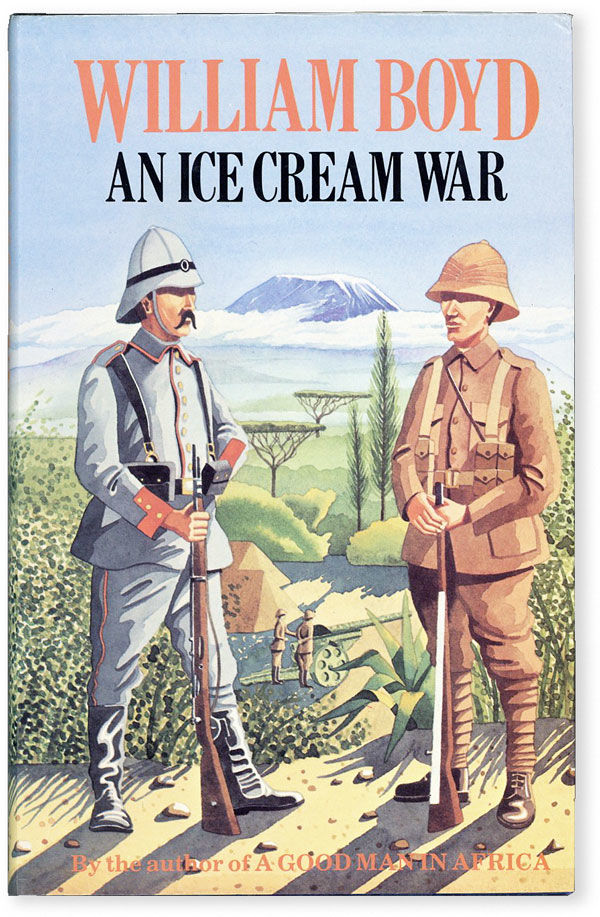 London: Hamish Hamilton, 1982. First Edition. First Impression. Octavo (22.25cm); navy blue cloth-covered boards, with titles stamped in gilt on spine; dustjacket; [xii],370,[2]pp. Upper corners gently tapped (though still sharp), else Near Fine. Dustjacket is price-clipped, with publisher's new price sticker immediately to the left of the clip; trivial wear to extremities and a hint of sunning to spine panel, else Near Fine. The Scottish author's second novel, set during the East African Campaign of World War I; nominated for the Booker Prize in 1982.