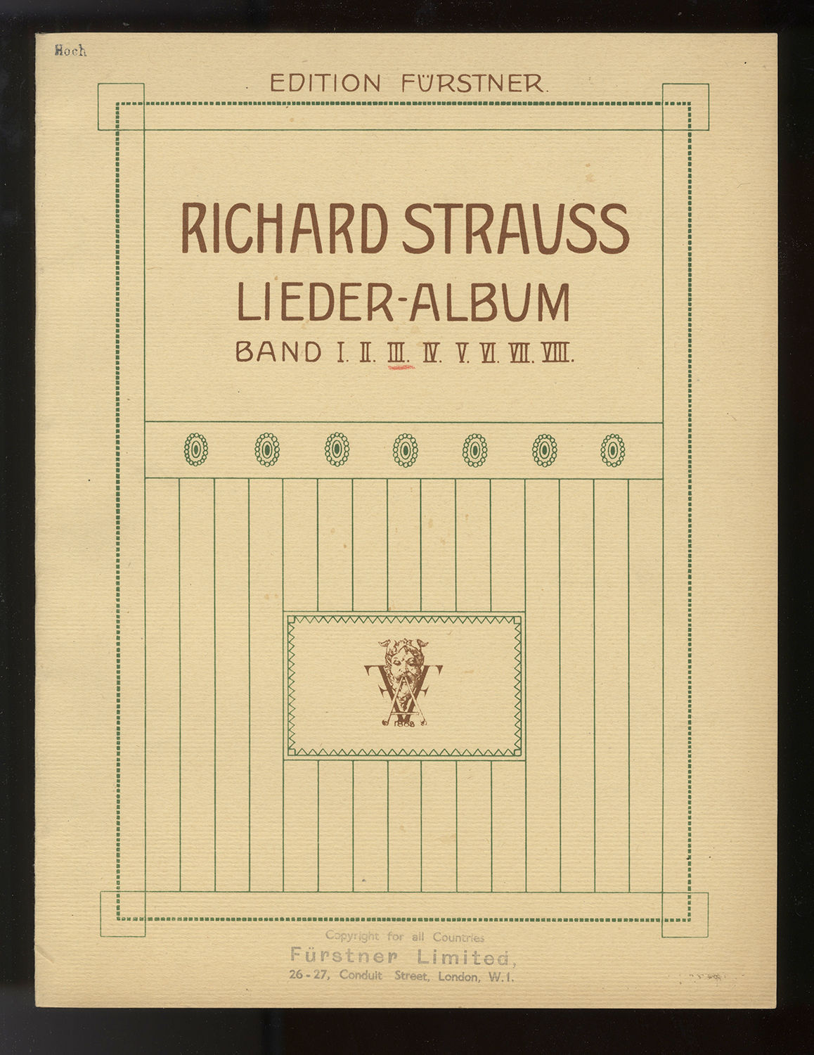 Berlin: Adolph Fürstner [PNs A. 5162 F., etc.], 1901. Quarto (305 x 235 mm). Original publisher's dark ivory wrappers printed in brown and green, publisher's advertisements to verso of lower. [1] (title), [2-3] (texts and translations), 25 pp.