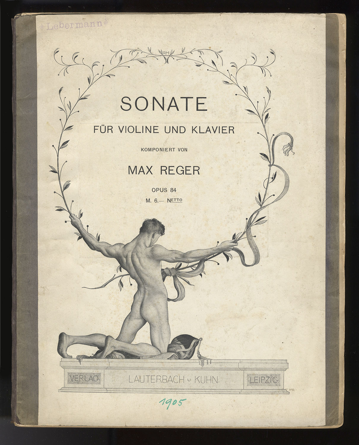 Leipzig: Lauterbach u. Kuhn [PN L. & W. 250], 1905. Folio. Original upper wrapper trimmed and laid down to heavy gray paper. 51 pp. score + 15 pp. violin part.