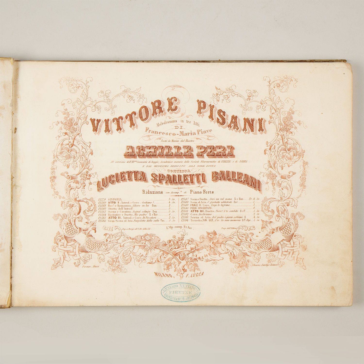 Handstamp ("Genesio Venterini Firenze") to foot of title.