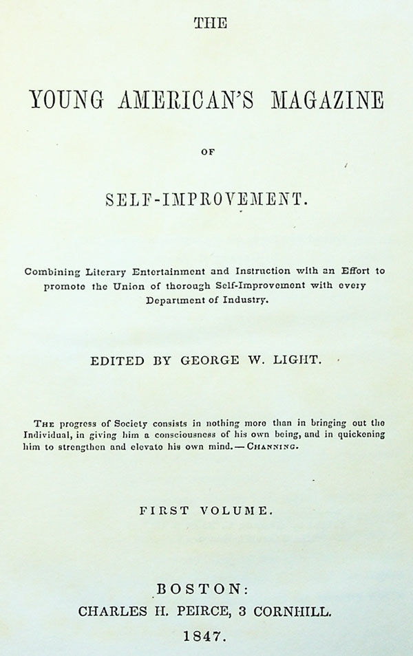 The Young American's Magazine of Self-Improvement. Combining Literary Entertainment and Instruction with an Effort to promote the Union of thorough Self-Improvement with every Department of Industry. First Volume [all published]
