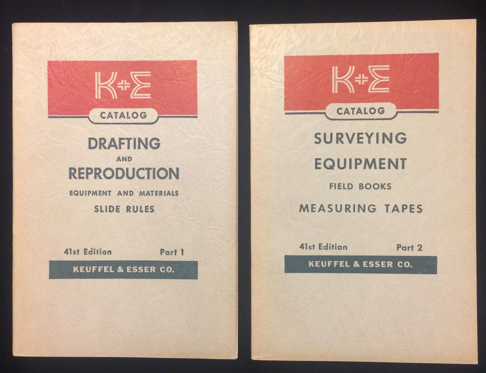 K+E Catalog Drafting and Reproduction Equipment and Materials Slide Rules Part 1 (and) Surveying Equiptment Field Books Measuring Tapes Part 2 (41st edition, 2 volumes)