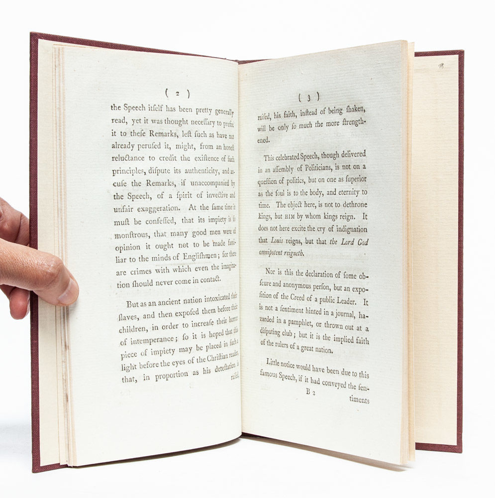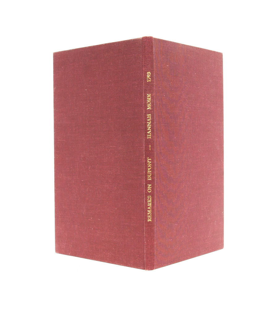London: T. Cadell in the Strand, 1793. First edition. Near Fine. A tall, wide-margined and surprisingly fresh copy measuring 210 x 130mm (pages) and collating complete: xv, [1, blank], 48. Bound in modern burgundy cloth with gilt to spine, bearing the bookplate of J.O. Edwards to the front pastedown. Internally unmarked. A scarce and assertive work by the famed Bluestocking, the 1793 first edition is reported at no institutions and has not appeared at auction.