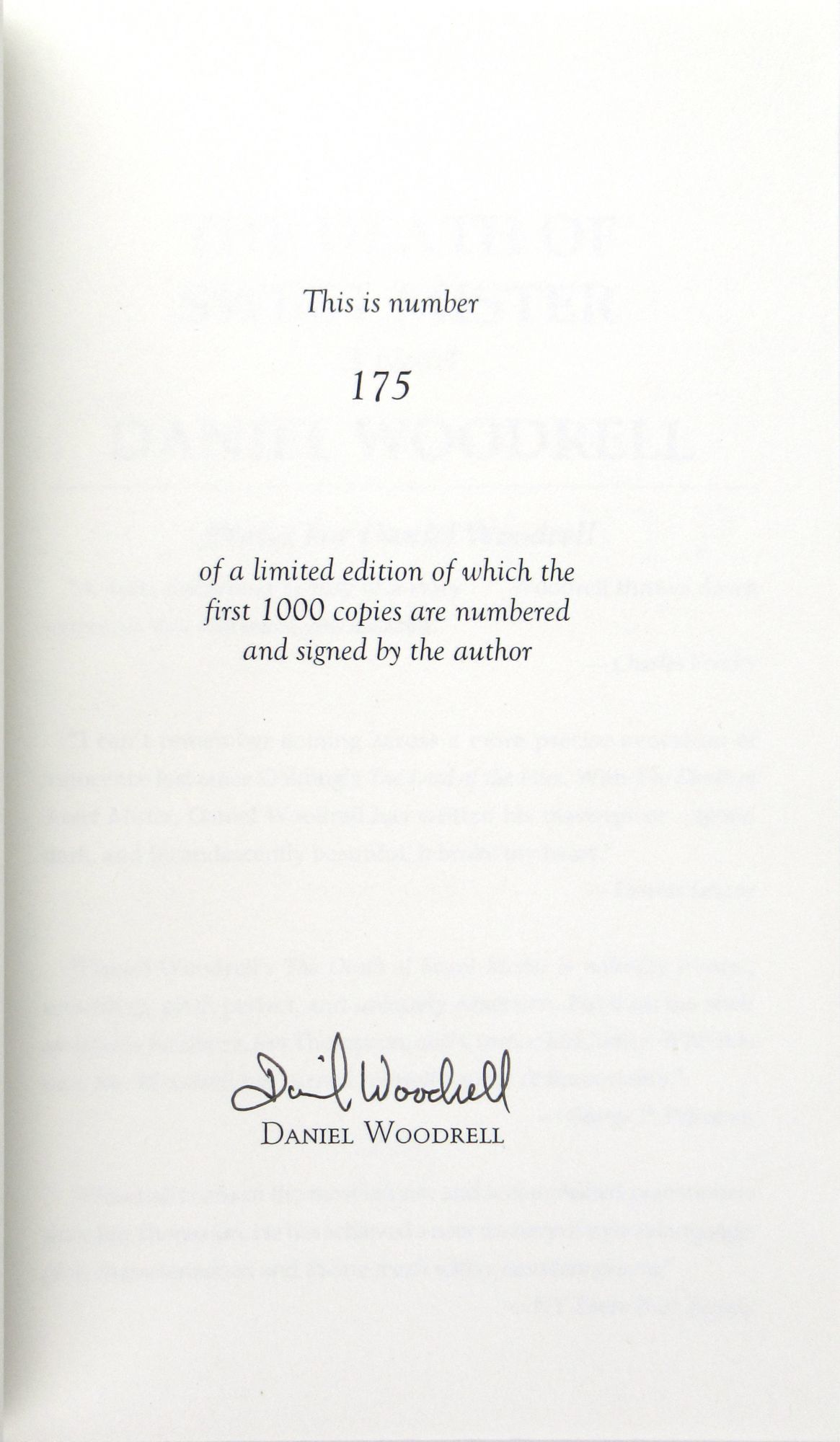 Harpenden, UK: No Exit Press, 2002. Very Good +. New York: No Exit Press, 2002. Limited Edition of 1000, this being number 75. Signed by Woodrell on limitation page without inscription. Octavo. 189 pages. Photographic wraps with red wrap-around band.