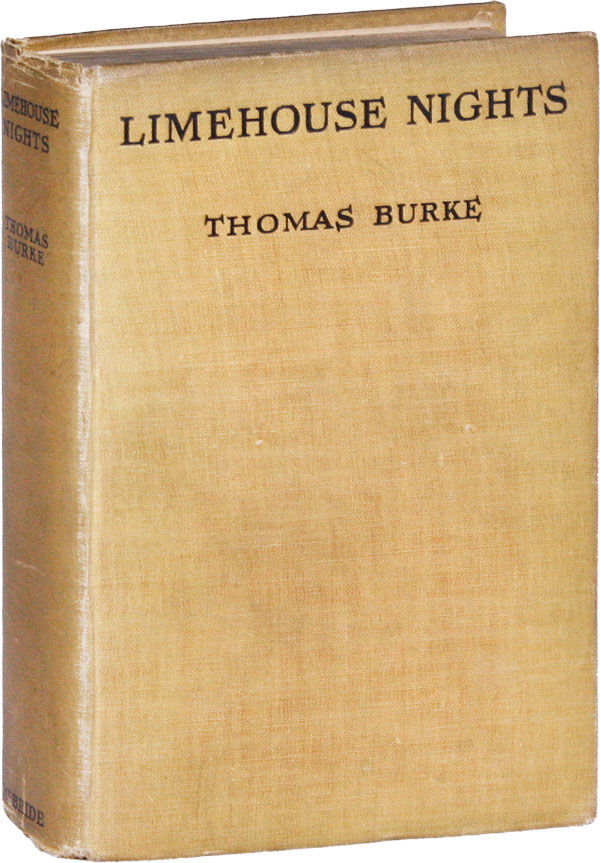 New York: Robert M. McBride & Company, 1917. First American Edition. First Printing, with "Published August 1917" on copyright page, and no mention of further printings. Octavo (19.75cm); tan cloth, with titles stamped in black on spine and front cover; [10],11-311,[1]pp. Some wear to spine ends and extremities, gentle sunning to spine, with some mild discoloration to board edges, rear hinge starting, with a small chip to lower right edge of front endpaper; Very Good. Best-known book by Burke (1886-1945), a collection of 14 short stories set in the Limehouse borough of London's poverty-stricken East End, featuring the the Chinese character Quong Lee as narrator. "The Chink and the Child," the first story in the collection, was the basis for D.W. Griffith's screenplay for Broken Blossoms (1919), and used "Gina of Chinatown" and "Song of the Lamp" as source material for his 1921 film Dream Street. A Haycraft-Queen Cornerstone and Queen's Quorum title. HUBIN, p.58.
